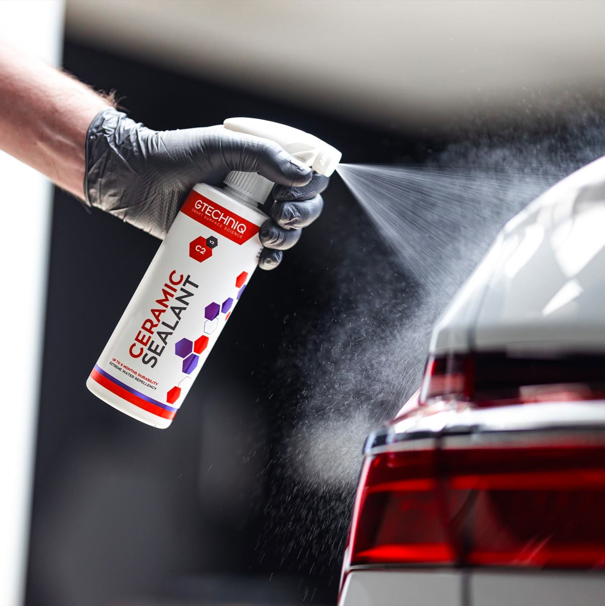 A ceramic coating is a mixture of nanostructured silanes and siloxanes that when hand-applied, chemically bond to the paint or glass. Ceramic coatings protect the surface from chemical and UV degradation as well as offering a level of scratch resistance. Gtechniq have a range of chemically bonding coatings that are quartz-based through to composite coatings, each offering varying levels of protection and durability.